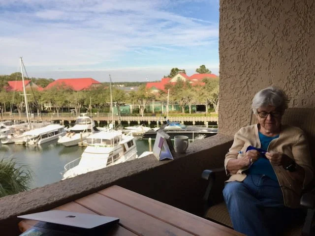 I knit on the balcony in Hilton Head