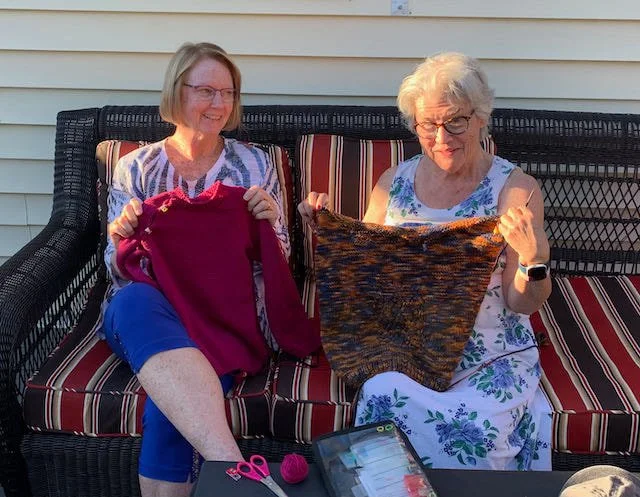 So I can knit hearts on AJ and Liz's front porch in the afternoon sun